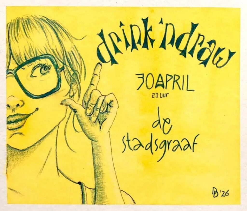 Op donderdag 30 april 2026 is er weer een Drink & Draw in Café De Stadsgraaf in Enschede.